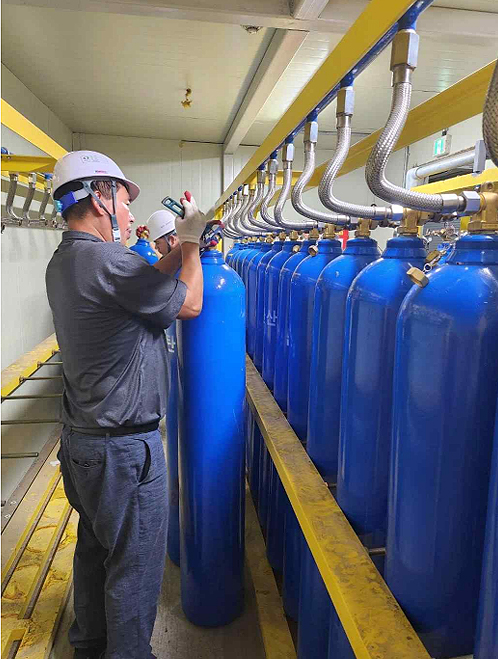 교체대상 탄산가스 실린더..