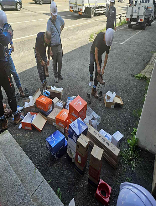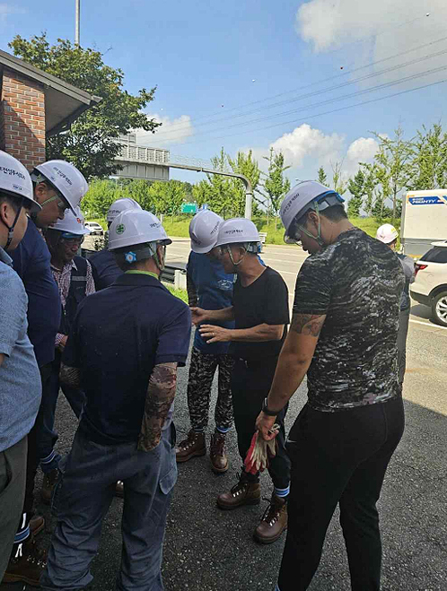 안전한작업을위해 안전화와 안전모착용..